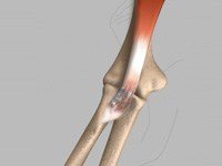 This tendon attaches the triceps muscle on the back of the arm to the ulna bone allowing the elbow to straighten. - Lateral Epicondyle